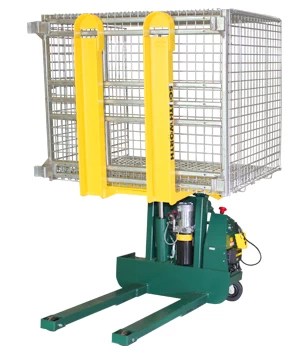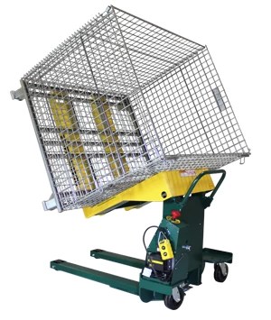 E-Z Reach™ Portable Tilters have casters that allow them to pick up staged containers and move them to the work cell. Baskets can be tilted up to 85 degrees to allow easy access to parts. E-Z Reach™ Portable Container Tilters are available in 2,000 and 4,000 pound capacities and feature 12 Volt DC power and a built-in charger (AC power is available).